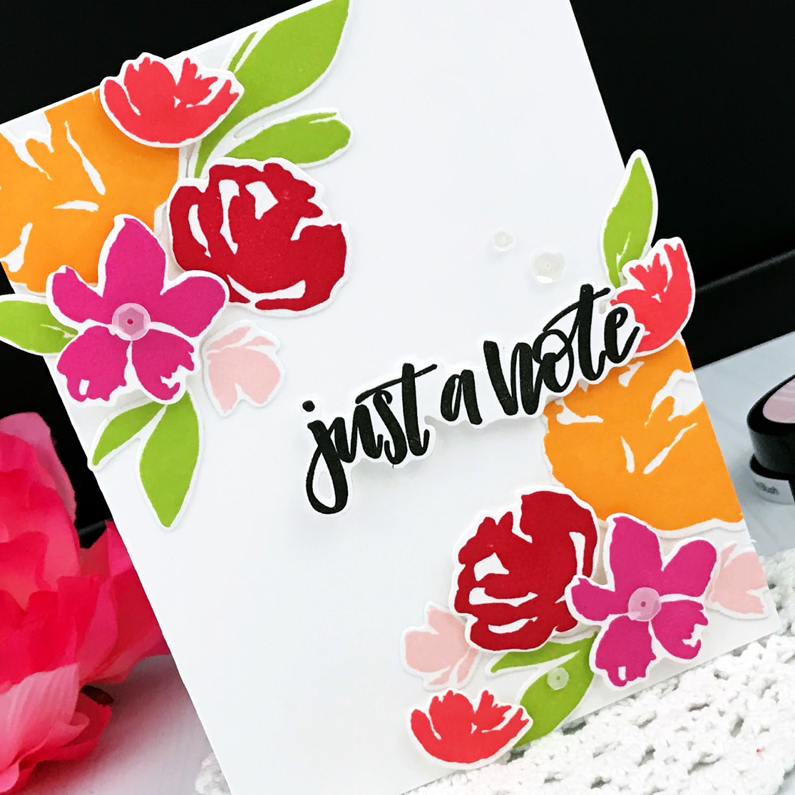 A year ago this month Simple Stems was released … a fresh and cheerful floral set with a variety of sentiments perfect for so many occasions. I didn't use them on my card for today, but these flowers fit beautifully inside Vogue Vases.