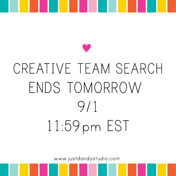 Tomorrow is the final day to send in your submissions for the Just Dandy Studio Creative Team Call. I have received so many wonderful e-mails inquiring and asking to be a part of the team and I am so, so grateful.