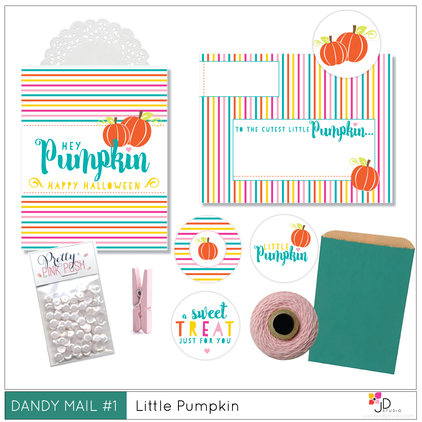 Little Pumpkin, is perfect to kick us off for the month of October. It is filled with little bits and pieces of girly sweetness and will make an adorable Halloween gift package for the cutest little pumpkin in your life. In this kit you will receive the following...
