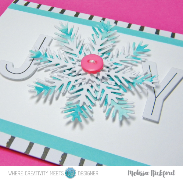 Hi there, friends! Here we are on the 9th of the month and that means it's time for the next Where Creativity Meets C9 challenge. This month's theme is 'Winter'. There are so many different ways you could create a winter themed card, but for me the first thing that came to mind is snow and snowflakes. For my card, I chose to work with the JOY stamp and die set, along with the Take A Bough die collection.
