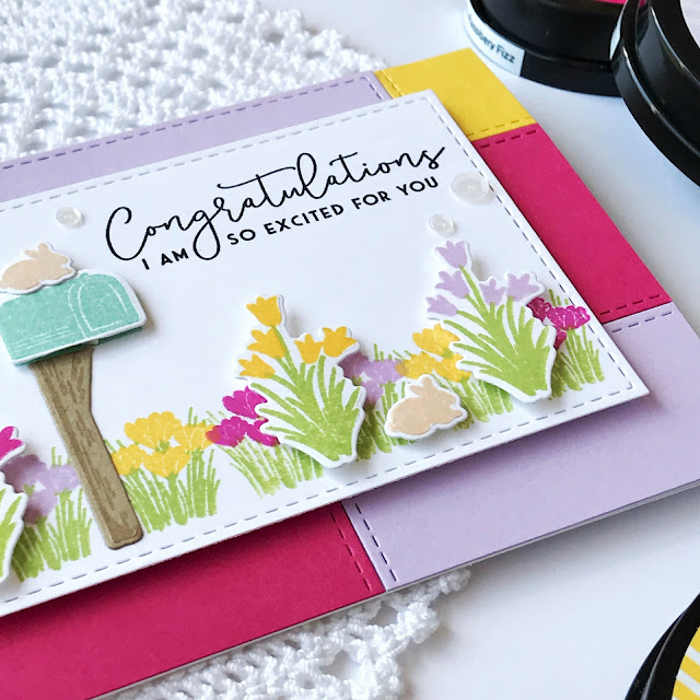 Up first is Fence Line Spring ... a beautiful set featuring a variety of images perfect for creating your very own spring front yard scene. Also featured is the new Noted Simply Stitched die collection ... love these stitched rectangles.